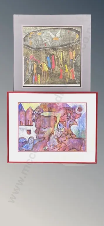 G A Genet - Florence, Italy & Santorini - watercolour on paper (2), 105x120mm (ea)
