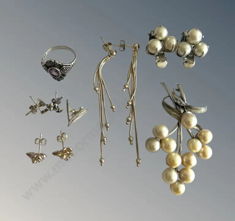Cased English Silver and Lotus Pearl Earrings