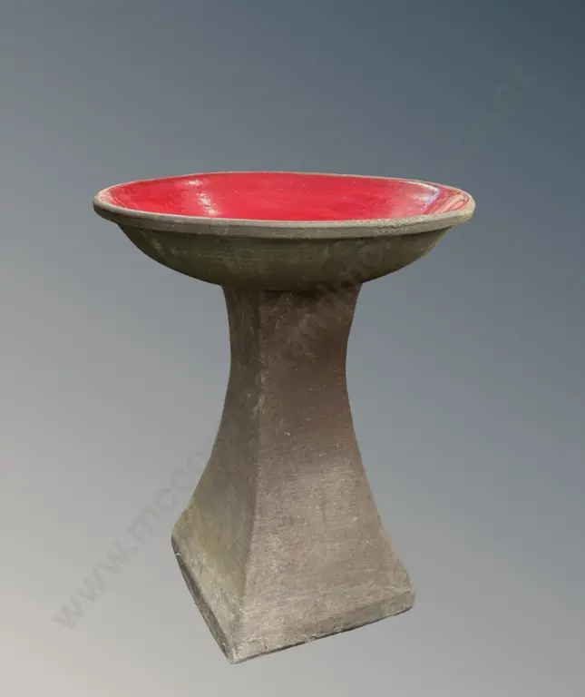 Concrete Pedestal Birdbath with Red Basin, H64xD53cm