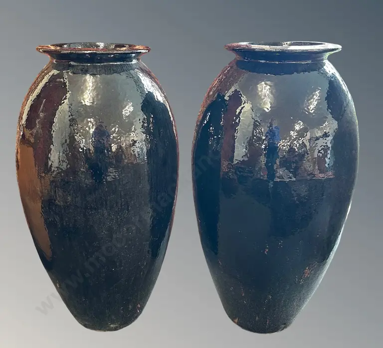 Pair of Black Glazed Terracotta Urns, H94xD47cm
