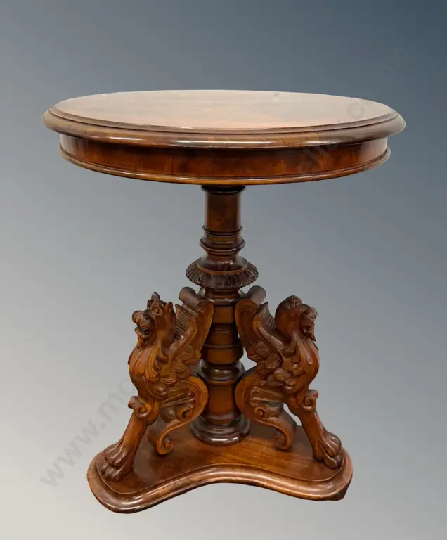 Small Round Pedestal Table with Lions – Dating from 1880–1900, H73xD60cm
