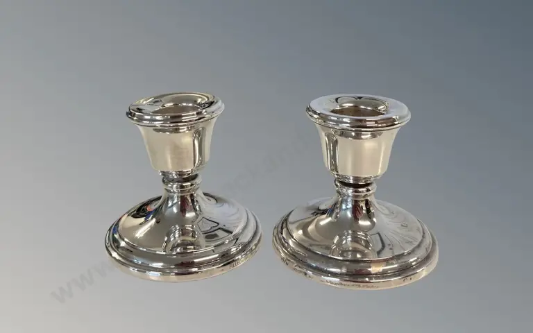 Pair of Sterling Silver Weighted Candlesticks, H6cm, TW159gms