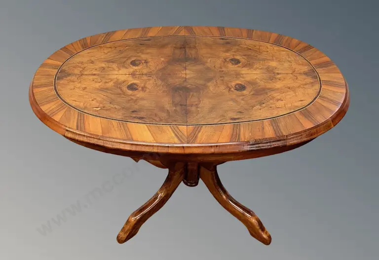 Walnut Oval Table on Pedestal Base, middle Biedermeier period (1860-1870), L98xH74xW67cm