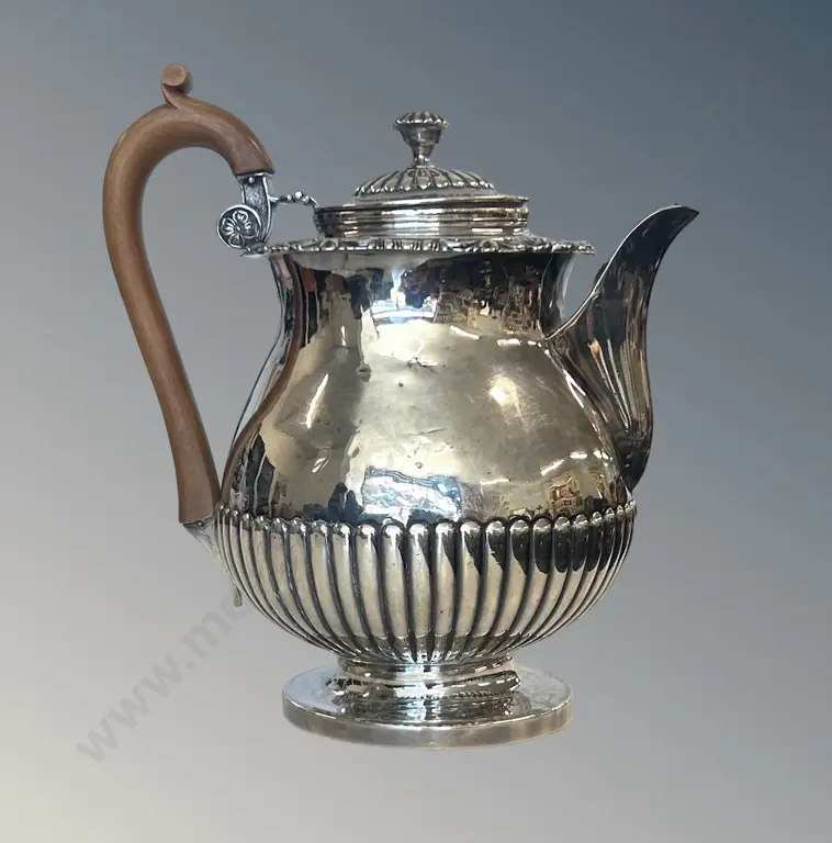 Sterling Silver Teapot, Half Reeded with Wooden Handle, TW767gms