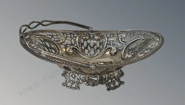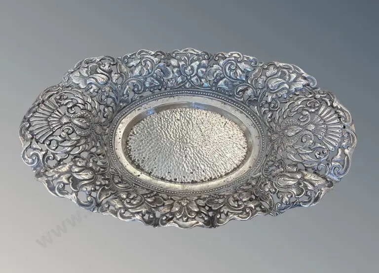 Art Nouveau 800 Silver Pierced Oval Dish, L25xW15cm TW209gms