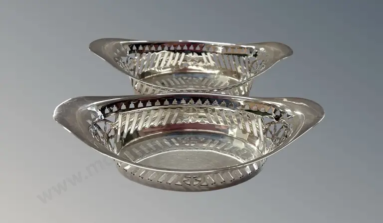 Pair of Sterling Silver Pierced Gallery Twin Handled Dishes TW142gms