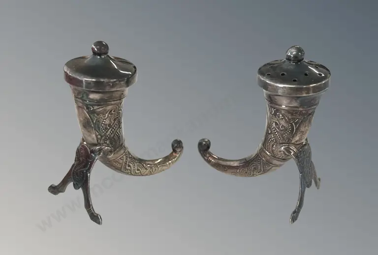 Sterling Silver Horn Salt and Pepper, TW35gms