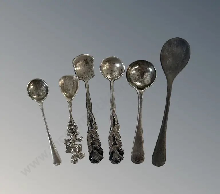Sterling Silver Miniature Spoons and Salt Spoons, (6), TW32gms