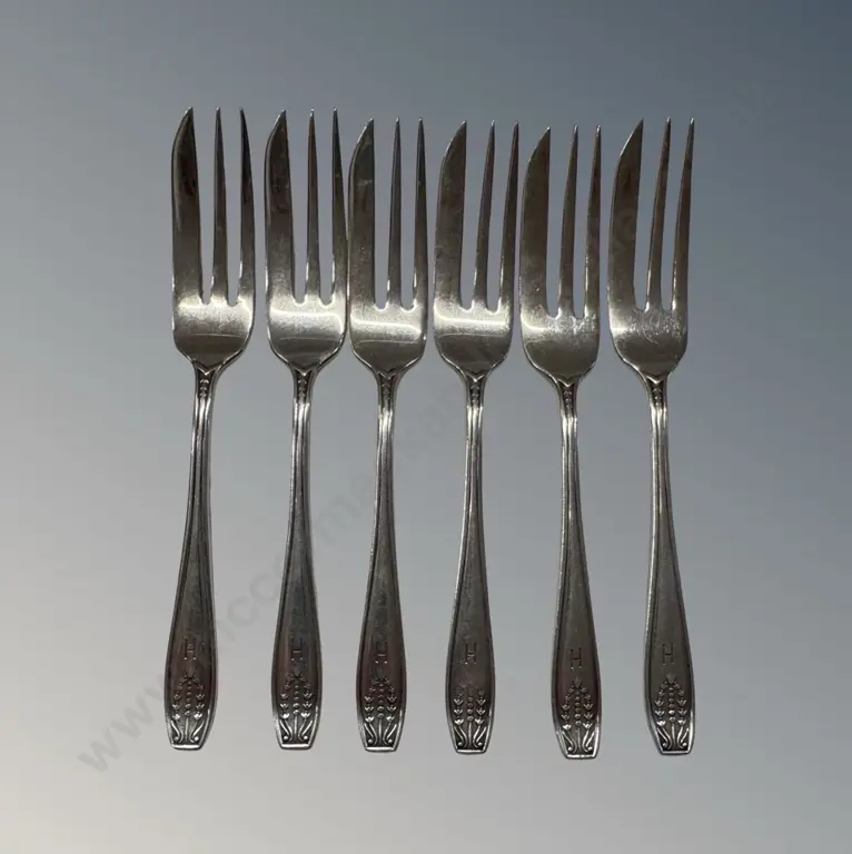 Set of Six Sterling Silver Cake Forks TW96gms