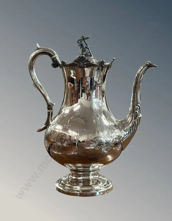 Sterling Silver Coffee Pot on Pedestal Base with a Swan Neck Spout, London 1839, H30cm, TW1021gms