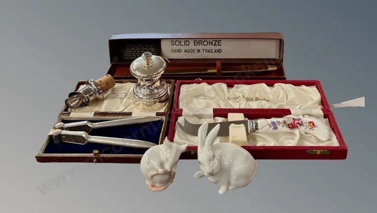 Postal Scales Swiss Pocket Knife with Embossed Lion, Leather Cased and Bakelite Cigarette Holders